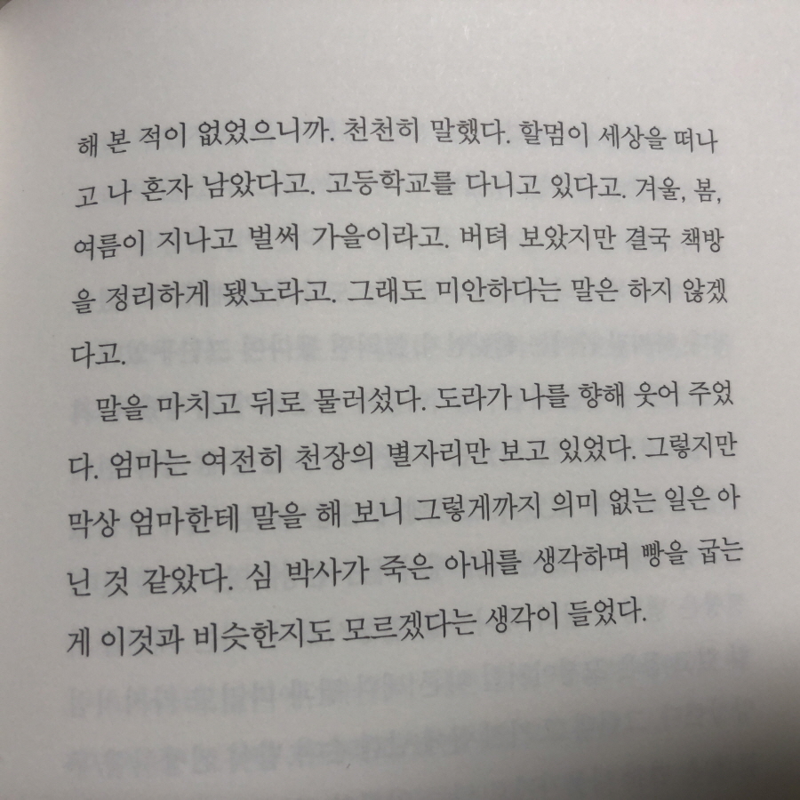 누구의 잘못도 아닌 일이어야 했지만 결과론적으로는 모두가 잘못한 일이 되어버린 곤이의 등장이 아니 일상이 읽는 내내 가슴을 먹먹하게 만든다. 여린 마음을 들켜버리는 순간 다시 나락으로 떨어지는 것이 두려워 되려 '쎄'보여야 했던 아이. 아무도 그런 아이가 얼마나 외롭고 두려운지 알려고 하지 않지만 타인에게 공감할 수 없는 윤재가 읽어내 버린 것에 얼마나 미안한지. 둘의 관계가 반성의 시간이 된다.
