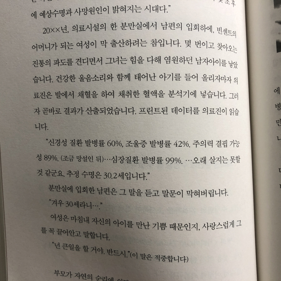 생명에 관해 도덕적, 윤리적 고민을 넓고 깊게 하게 만드는 책이다. 영화 <가타카>가 보고 싶어졌다.