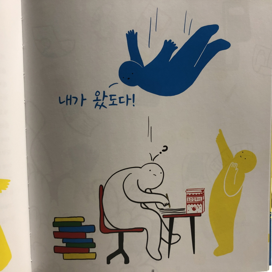 역시나 작가의 그림은 직관적이라 쉽다. 뭣 좀 해볼라치면 별의별 걱정거리들이 하늘에서 뚝 떨어지는데 그런 녀석들의 등장을 이리 쉽게 표현할 줄이야. "내가 왔도다"라니 걱정이, 이 시키 등장이 너무 당당한 거 아닌가?!