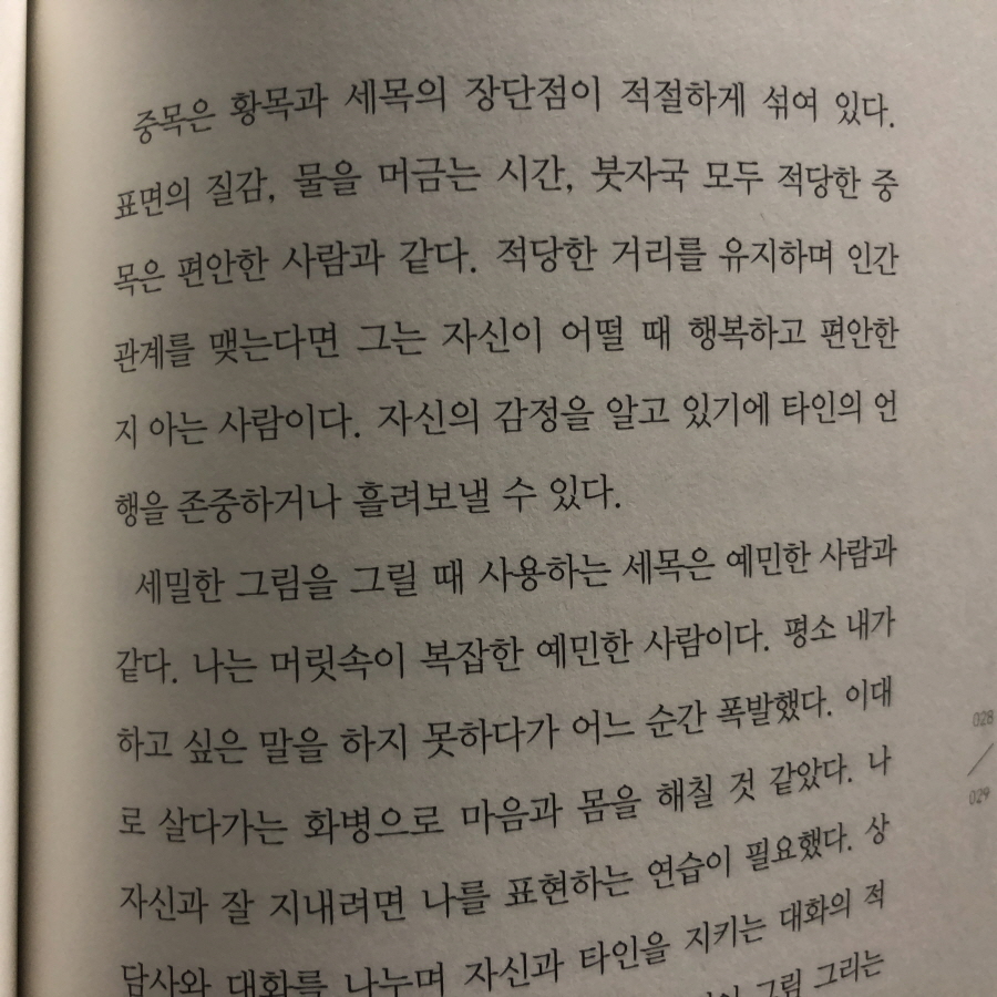 색을 덧입히며 물기가 종이에 머금도록 기다리는 일 같이 수채화를 통해 터득한 것들이 작가가 삶에서 얻은 인간관계의 깨달음으로 번진다. 그리고 그런 일들은 읽는 내게 공감으로 천천히 스며 든다.