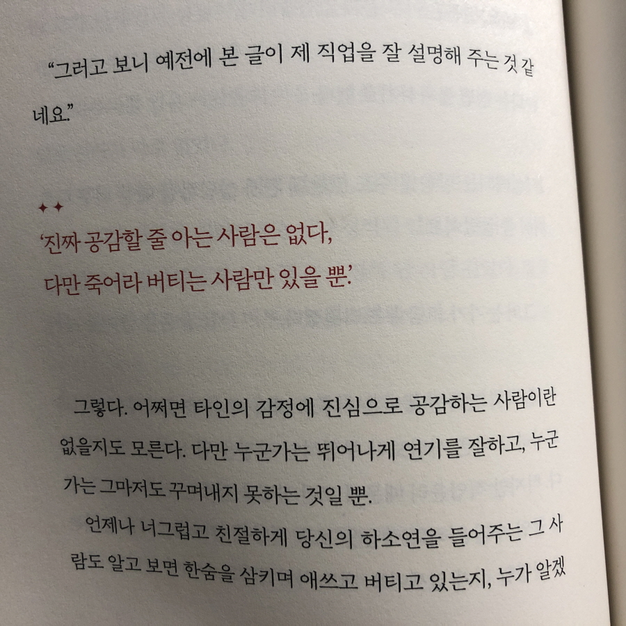 "진짜 공감할 줄 아는 사람은 없다. 다만 죽어라 버티는 사람만 있을 뿐." 156쪽, 나는 당신의 감정 쓰레기통이 아니다