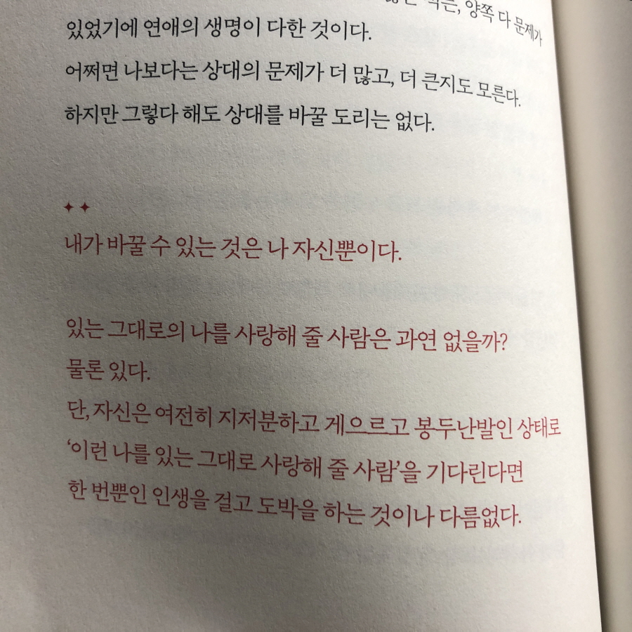 결코, 그러려던 건 아니다. 그런데 제목은 곰곰이 내 결혼 생활을, 아내를 그리고 나를 훑어 내려가게 했다. 책을 읽기도 전에 마음이 바닥까지 가라 앉는 느낌이다.