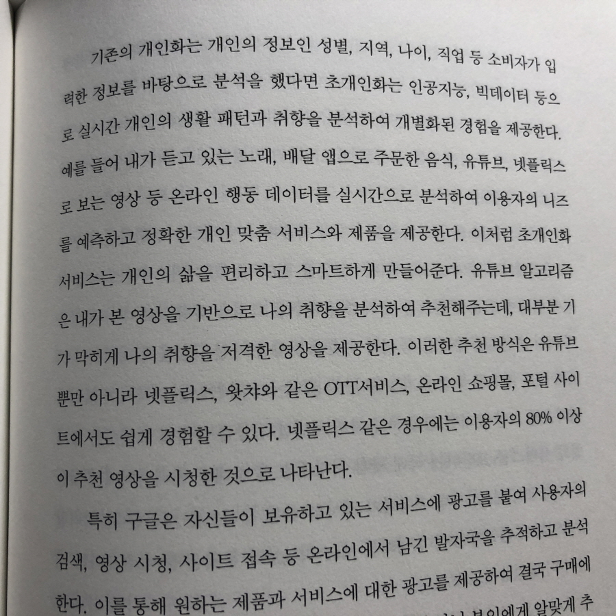 현대인은 영화, 음악, 전자 도서 등의 문화 콘텐츠나 필요한 음식재료, 아침 식사, 자동차 세차 등 일상 생활에서 다양한 유무형의 구독 서비스를 별생각 없이 경험하고, 그 안에서 쉴 새 없이 돌아가는 알고리즘으로 개인적인 취향이나 정보가 데이터로 축척 된다. 어찌 보면 이런 데이터 활용은 경계해야 할 어마 무시한 일들이기도 하지만 반면 눈 깜짝할 새에 새로운 세상이 펼쳐지게 만든다는 현실 또한 자각하게 한다.