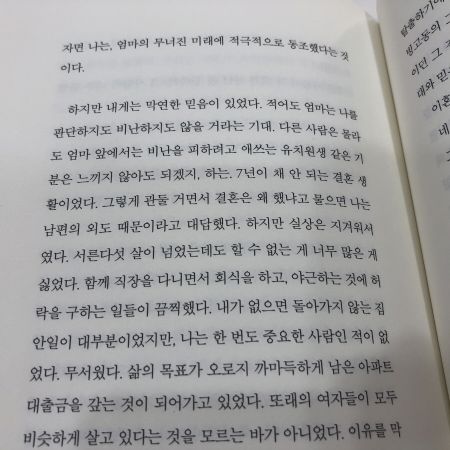 그런 가슴을 내리누르는 덩어리를 내보였는데 '네 새끼는?'이라며 엄마는 눈을 감았다. 어쩌면 어쩌면 혹시 집 나갔던 엄마는 엄마가 돌아와 다시 엄마가 되었을 그때의 엄마의 입장이 자신 때문이었다고 억울해 할지도 모른다는 엄마의 생각 끝에 다다라서 더 아프게 찔러댄 건 아니었을까.