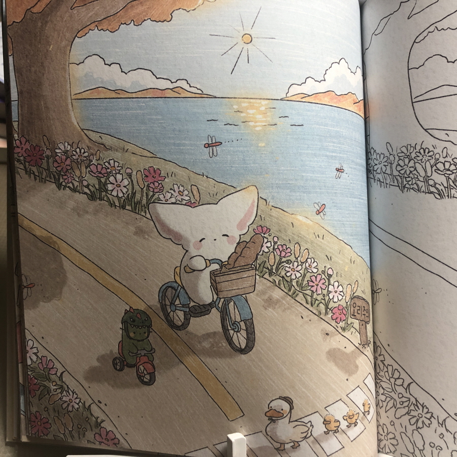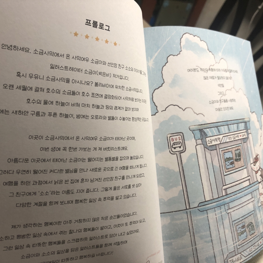 뭐랄까. 그저 색칠공부 느낌의 책이 아니라 스토리를 가진 이야기 책이고, 그 속에 들어 온 느낌이 들었다. 우유니의 소금이와 독거 선인장 소소의 사계절 행복에 대한 이야기가 궁금하다. 그리고 이 책 특징은 180도 펼쳐지는 특수 제본으로 색칠하는 데 아주 그만이다.