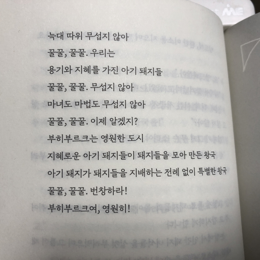 피리 부는 남자의 사연과 막간 인형극 속 아기돼지 삼 형제와 마녀의 이야기는 감탄하지 않을 수 없다. 진짜 이 작가의 상상력은 어디까지일지 궁금해질 정도로 빨간 모자와 피노키오의 여정에 눈을 뗄 수가 없다. 더욱이 빨간 모자의 여정에 워킹맘의 실태와 경력단절, 출생률, 이주 노동자의 노동 착취 등 산재한 사회문제를 녹여내며 나름 소신 있게 꼬집는 것도 재밌다.