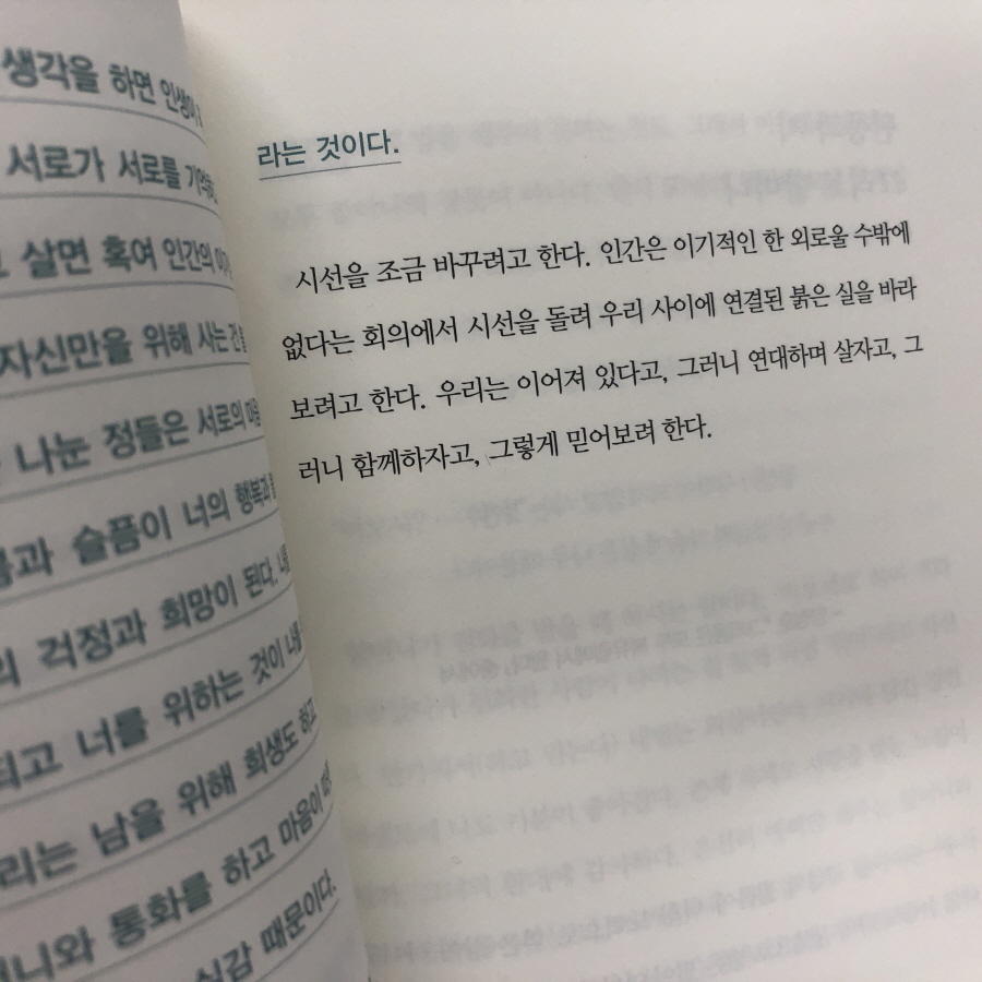책은 묵직해서 머리를 누를 만큼 생각거리가 많기보단 소프트 아이스크림처럼 부드럽고 편안하게 읽힌다. 복잡다단한 인간 관계에 자신의 경험을 자연스럽게 덧입혔다. 한참 생각하고 심각하게 고민스럽게 만들지 않고 독자도 일상에서 경험하는 일처럼 아주 친근한 이야기다.