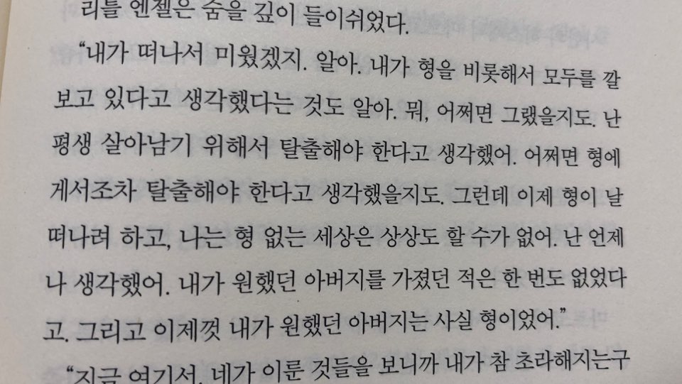 근데 빅 엔젤의 결코 천사스럽지 않은 건조한 이야기들은 죽는다는 것이 살아서 꼭 좋거나 반대로 억울한 일이 아닐지도 모른다는 생각이 들었다. 편할 수도…. 산다는 건 참 피곤한 일이 아닌가.