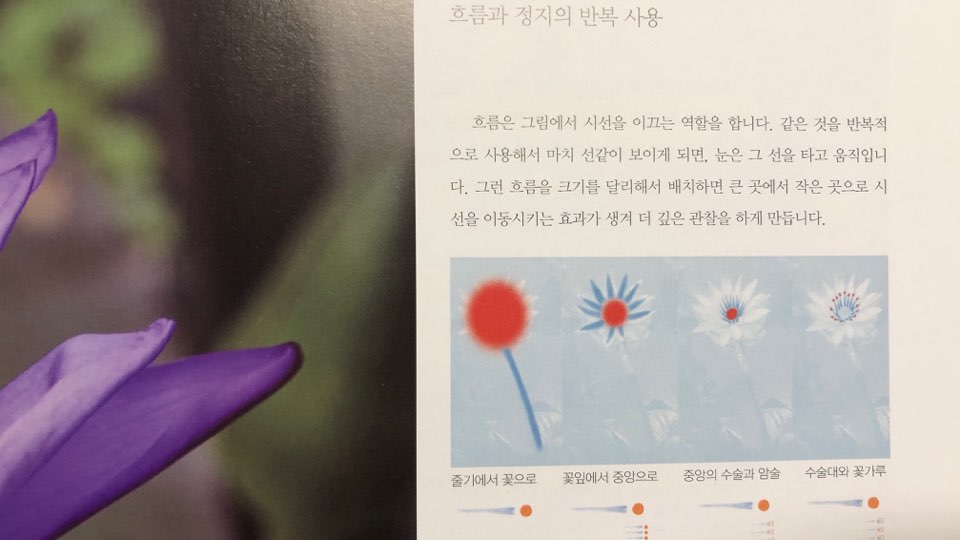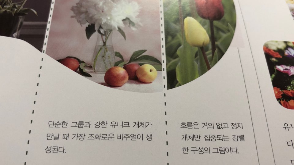 솔직히 이 책을 읽었다는 것만으로 저자의 바람처럼 디자인에 대한 고정관념을 버리고, '예술가들이 어떤 생각으로 작품을 만들었을까'를 스스로 사유하고 읽어낼 수 있지는 않겠지만 최소한 작품을 대할 때 5:5 혹은 7:3 정도의 비율이나 시선의 흐름, 작품 안에서 흐르는 시선의 방향, 리듬 같은 것들이 눈에 들어오지 않을까 싶다. 그리고 이 이론들은 우리가 흔히 핸드폰으로 사진을 찍을 때조차도 고려할지도 모르겠다.