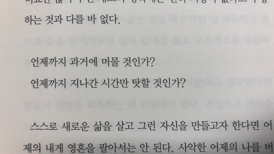 "어제와 다르지 않으면 어제와 여전한 오늘이 되풀이될 수밖에 없다. 그와 같은 일이 반복되는 동안 삶은 느슨해진 시계태엽처럼 언젠가 멈추고 만다. 생기를 잃고, 행복해지는 상상조차 할 수 없는 상태에 놓인다." p39