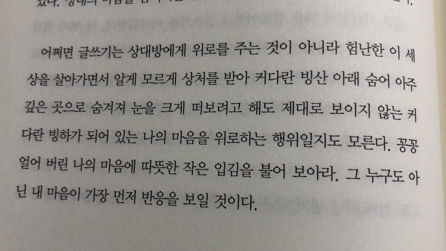 "글은 모든 사람에게 치유가 될 수는 없지만 누군가에게는 반드시 치유가 된다." p119
