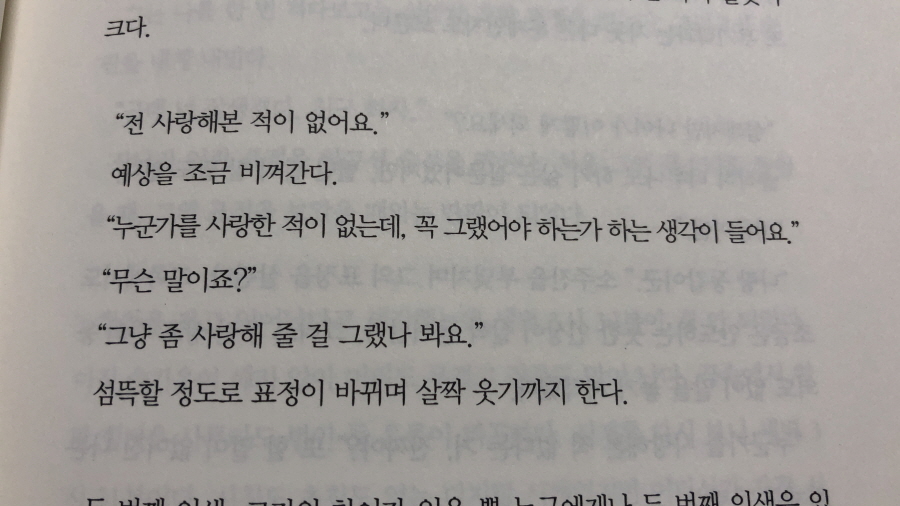 이 책은 읽은 독자라면 주춤하게 된 문장이 아닐까. 줄곧 물음표를 떠올리며 왜 읽고 앉았는지 모르면서 읽다가 마치 과속으로 달리다 갑자기 나타난 방지턱 위를 덜컥거리며 하늘 위로 붕 떠버린 느낌.
