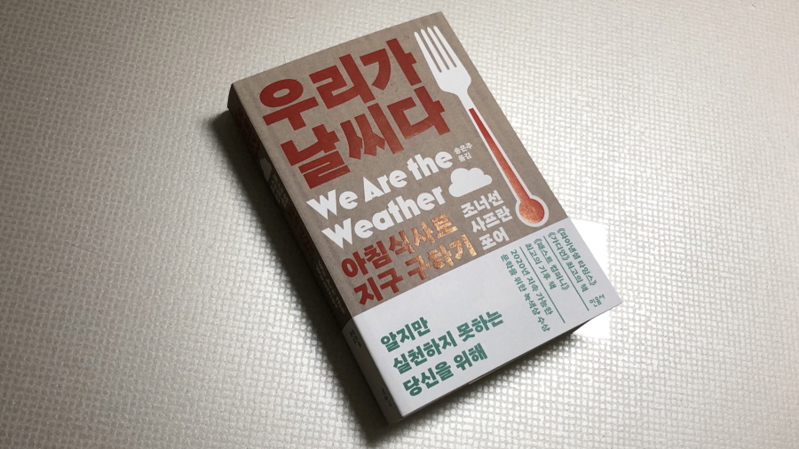 표지의 '날씨'와 '식사'와 온도가 올라 간 포크 그림을 보고 식습관과 관련된 환경 문제를 다룬 책이라는 짐작을 했다. 틀리지 않았다. 그리고 인상 깊은 문장이 있다. "전 지구적 위기"라는 말인데, 사실 좀 어렵다고 느꼈다.