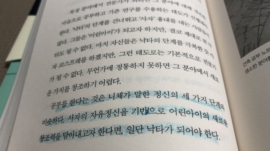 그렇게 조합해 보자면, '기획엔 정석이 없고, 그리하여 디자인이 된다.'라는 걸까? 이 책 내게 분명 쉽지 않은 의미가 될 것 같다. 일상의 모든 것, 그러니까 일어나고 씻고 밥 먹고 학교 가고 출근하는, 그렇게 존재를 통해 벌이는 모든 행위 자체는 우리가 '기획'하는 것이라는 기획자의 말은 쉽게 공감되진 않지만 이해는 된다. 그게 되려 혼란스럽다.