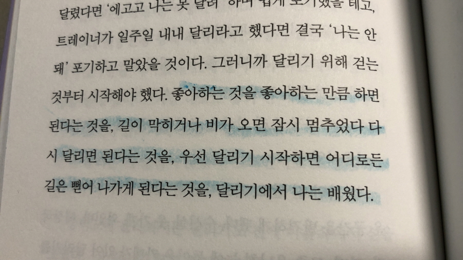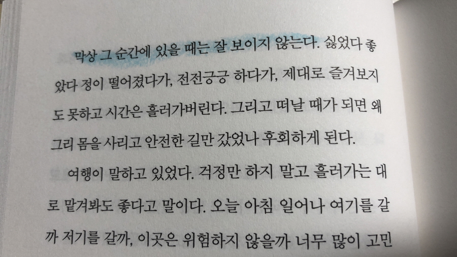 읽다 보면 다소 뻔한 이야기 같지만 그의 담백하면서 다채로운 그의 색깔에 매료되어 푹 빠져들어 읽게 된다. 여행지에서 또는 동네를 달리는 그의 모습에서 나를 발견하기도 해서 뻔하지 않게 느껴진다. 그리고 이슈나 고정 관념에 대한 시각도 명쾌하다. 누구의 기준도 아니고 흔들리지도 않고. 여러모로 참 매력적인 사람이다.