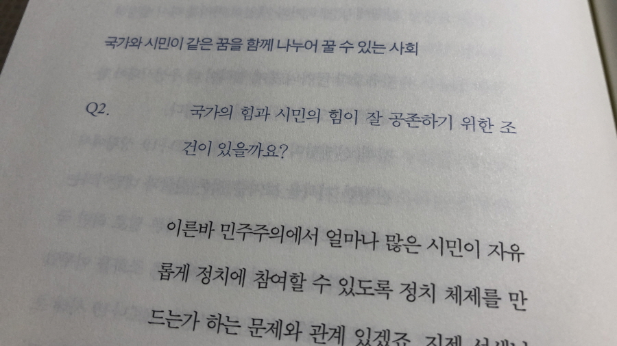 "개인에게 최대한 평등하게 권리를 배분해 주는 것 또한 국가의 역할이 되었습니다. 그래서 개인과 국가 사이의 거리를 N 분의 1로 나눈 게 민주주의라고 볼 수 있어요." p198