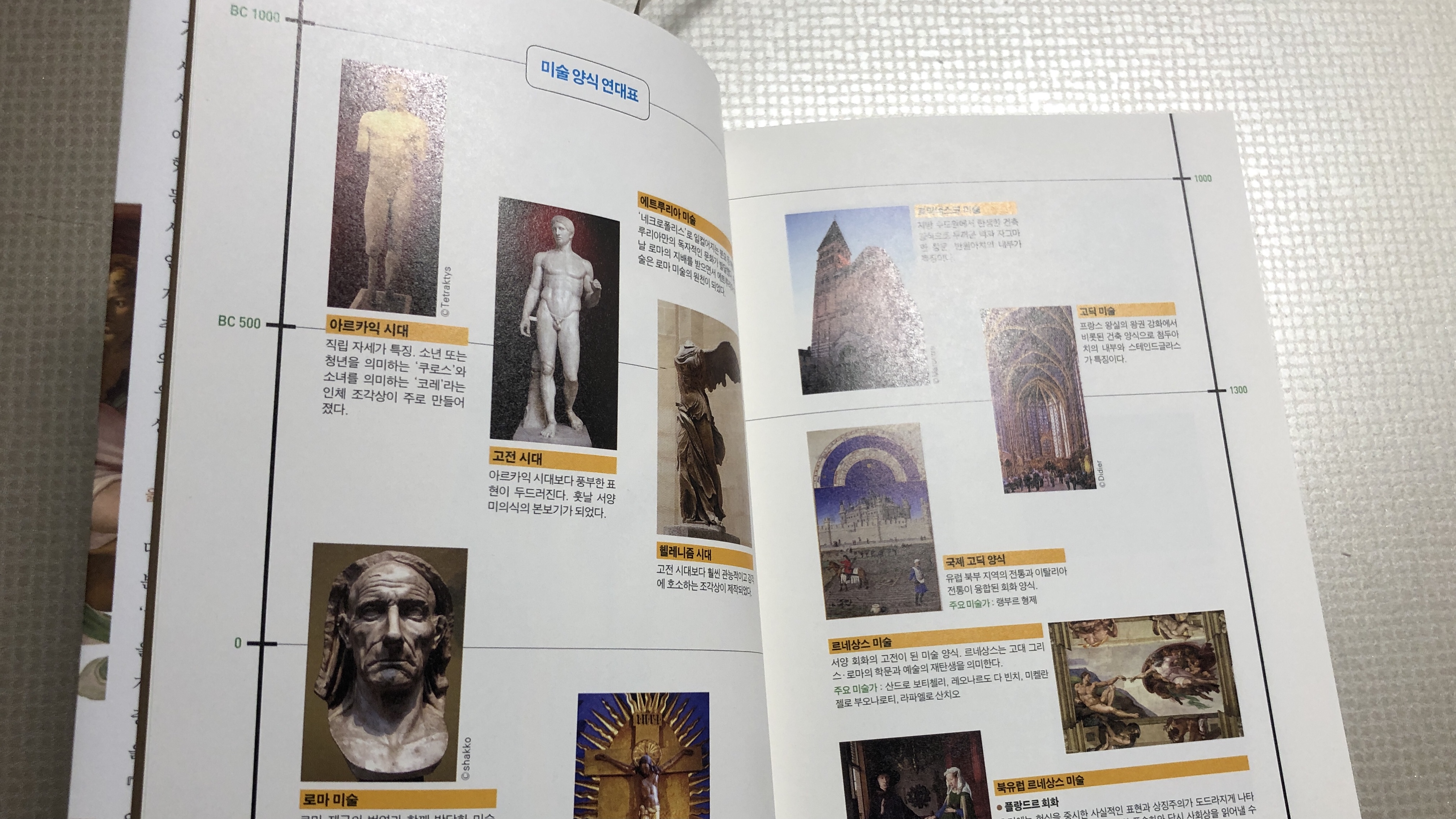 BC1000부터 AD1900까지의 미술 변천사를 연대표로 보여주며 시작하는데 보면 과거는 주로 조각이나 건물 같은 양식이 주였다면 현대로 올수록 그림 위주의 화풍이 주를 이룬 것처럼 보인다.