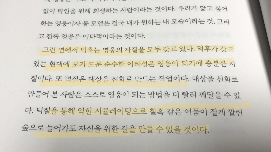 이 책은 15명의 철학자를 통해 인류가 사유의 폭을 확장할 수 있었지만 어렵기만 하던 철학의 세계를 그의 덕질덕에 우린 좀 쉽게 이해할 수 있었을지 모른다. 청소년 권장 도서라지만 성인에게도 피가 되고 살이 되기에 충분하다. 그뿐만 아니라 체계적으로 정리한 덕후의 덕질을 읽다 보면 그동안 부정적으로 여겨지던 덕질은 은근 어깨에 뽕을 심는다.