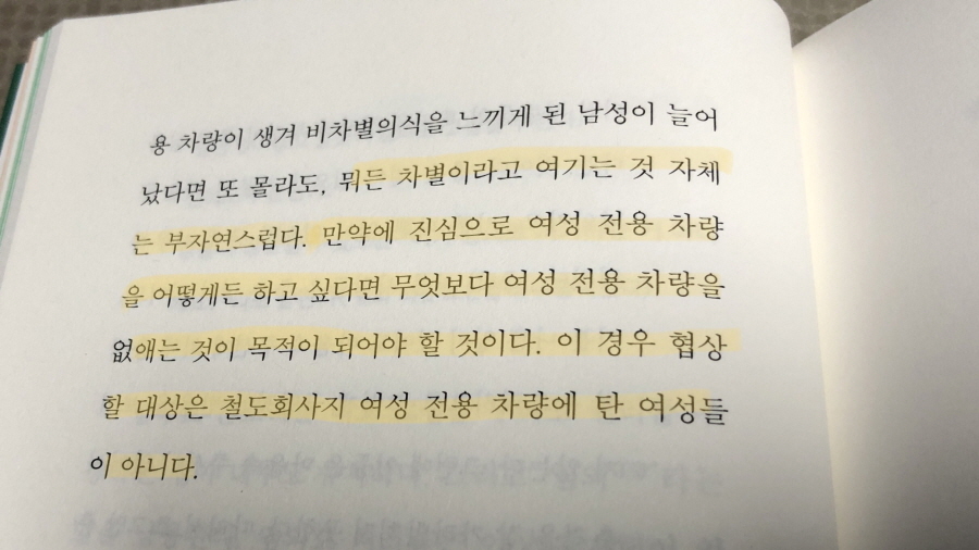 예상했다. 이 시대는 물욕보다 관계욕으로 피로해지는 게 아닐까 했는데 역시나 저자도 물건에 집중하지 않고 시작은 사람 관계의 피로도를 주목한다. 지하철 여성전용칸을 두고 '차별'에 관한 주제로 연결 짓는 내용은 하는 일이 그렇다 보니 장애인 차별과 관련하여 연결된다. 그러면서 역차별을 주장하는 사람들의 심리도 엿본다.