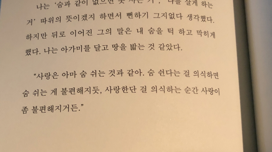 '사람이 변하며 죽는다'니 사람이 쉽게 변하지 않는다는 말을 믿는다기보다 그냥 안 변하는 게 낫지 싶다. 죽는다는 데 그러면 안 되지 않겠는가. 그런 생각 끝에 너나 내가 아닌 '사람 사이'가 변하는 거란 작가의 말에 그렇겠다는 생각이 들었다.