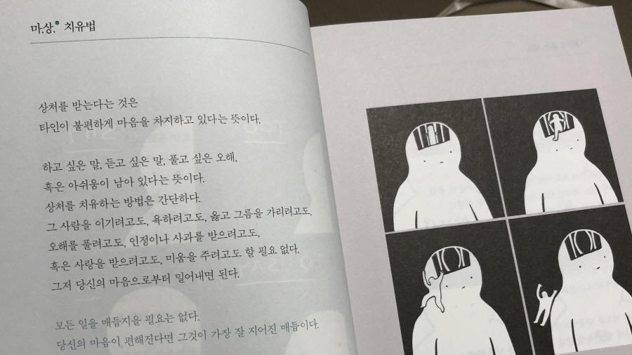 <마상 치유법>을 읽다가 "그래! 그러면 되겠네!" 했다. 10초 후 "근데 그게 쉽나?" 했다. 그게 쉽게 밀려날 녀석이 아니라서. 작가도 잘 알지 않나?