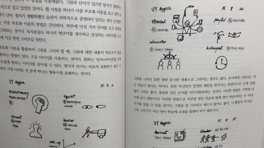 미처 깨닫지 못했던 사실 하나, 어릴 때 방학 때면 늘 그리고 검사까지 받았던 생활계획표가 비주얼 씽킹이었다니 새삼 새롭다. 교과서 귀퉁이에서 쏘아 올려지던 로켓도 그런가?