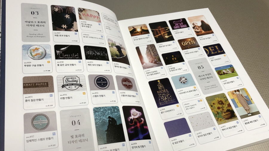 디자이너는 아니지만 업무에 은근히 디자이너를 흉내 내야 하는 일이 자주 있다 보니 이 책은 은근 선물 같았다. 책을 보고 따라 하는 것이 창조적 결과물을 재생산하는 정도에 머물지는 몰라도 다양한 테크닉을 배울 수 있다는 점에 기대감이 높았다. 표지처럼 환상적인 디자인을 할 수 있다는 것에 흥분됐달까?!